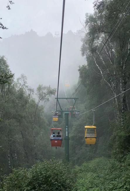 第二天行程安排就是攻上駝峰,駝梁因山頂兩峰此起彼伏,形如駱駝峰脊而得,駝峰就是最高處,我們早上7點到達山腳,開始爬山,清晨山中環(huán)境清幽,云霧繚繞,我們沿著蜿蜒山路,到達了纜車處,為了保存體力,我們選擇的乘坐單程上山的纜車,和別處的纜車不同,駝梁山的纜車是跨過一座山峰,到山腳下,再爬駝梁主峰。纜車是框架的,沒有玻璃,可以清楚的近距離觀賞漫山的林木,那種美景,單純爬上去是看不到的。