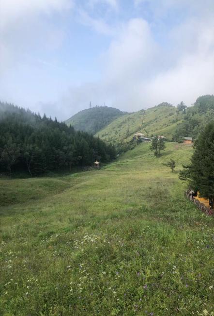 下了纜車,就是云頂草原,海拔2000多米高的山頂,寬坦如砥,草茵幽幽。再往上一路木梯,經過筆直的松林,漫山的花海,就到達了駝峰了,雖然累但是心情舒暢,漫山的云霧猶如仙境,我們在駝峰的石碑旁,在漫山的花海中,紛紛留影,記錄下這美麗的瞬間!
