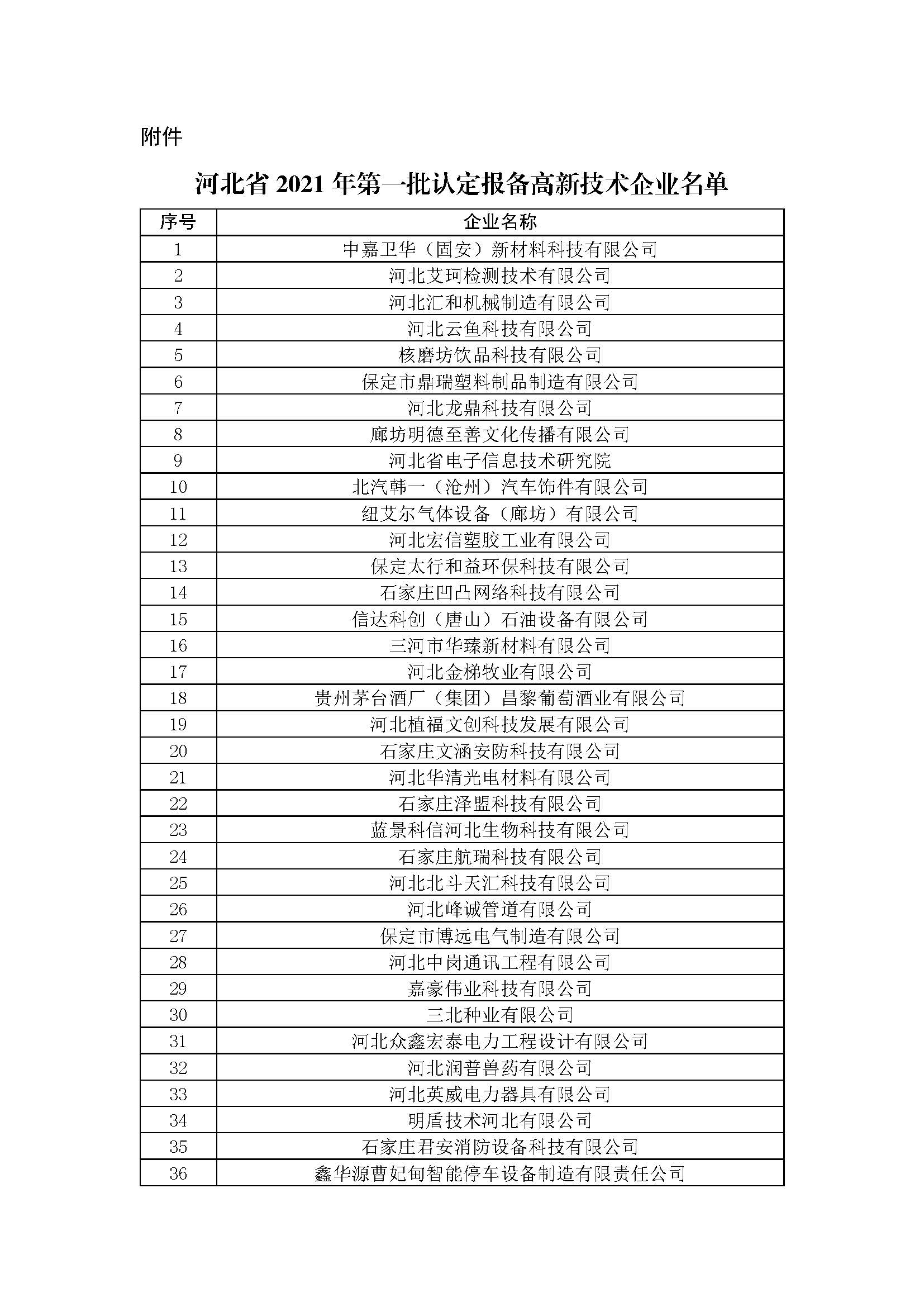 附件:河北省2021年第一批認(rèn)定報(bào)備高新技術(shù)企業(yè)名單